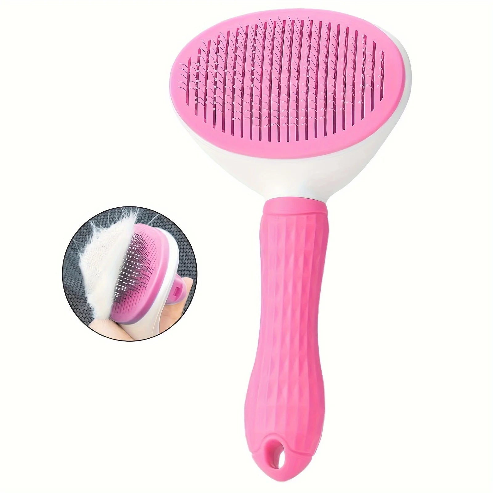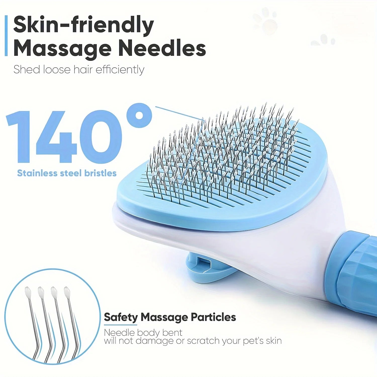 Pet Grooming Brush with One-Click Hair Removal - Cat and Dog Massage Comb with Detachable Stainless Steel Bristles - Plastic Han Pet Grooming Brush with One-Click Hair Removal - Cat and Dog Massage Comb with Detachable Stainless Steel Bristles - Plastic Han