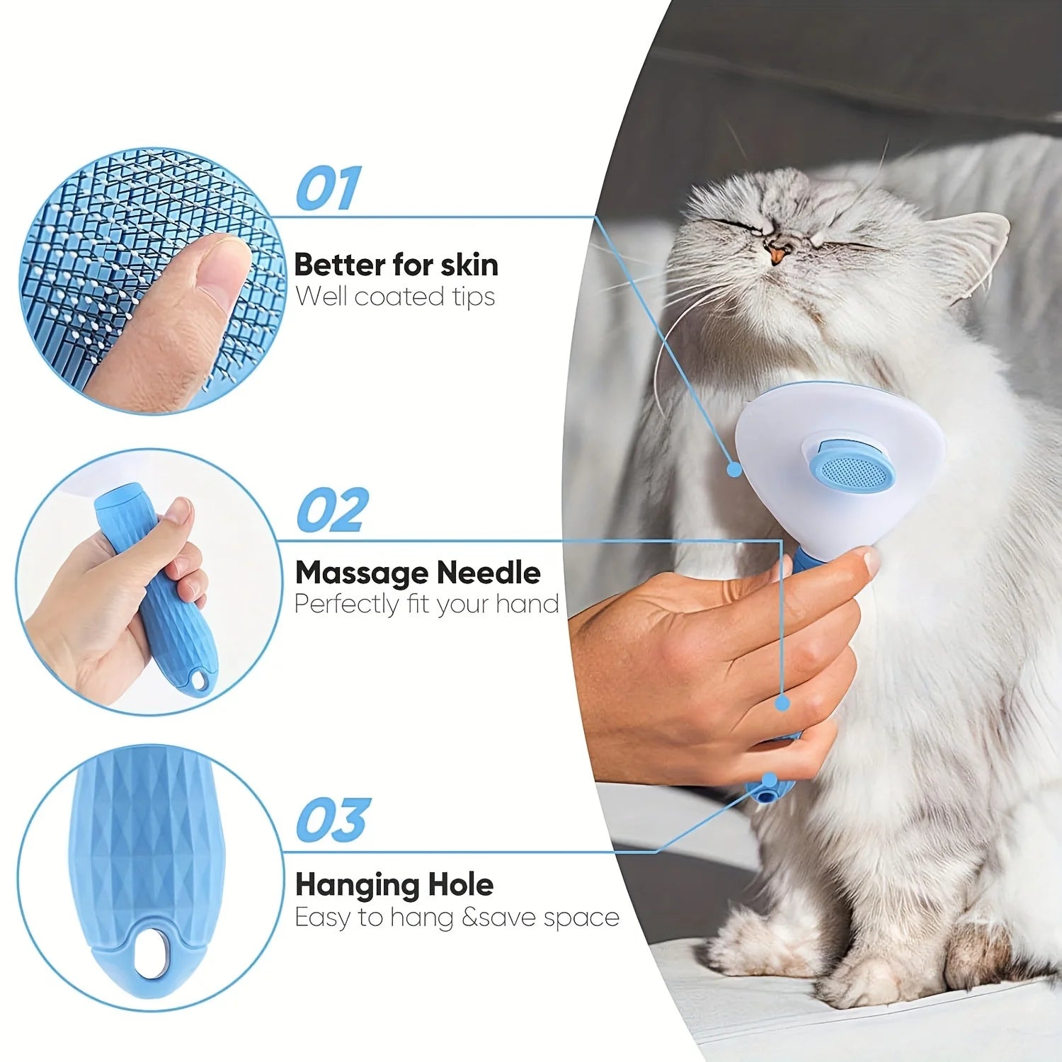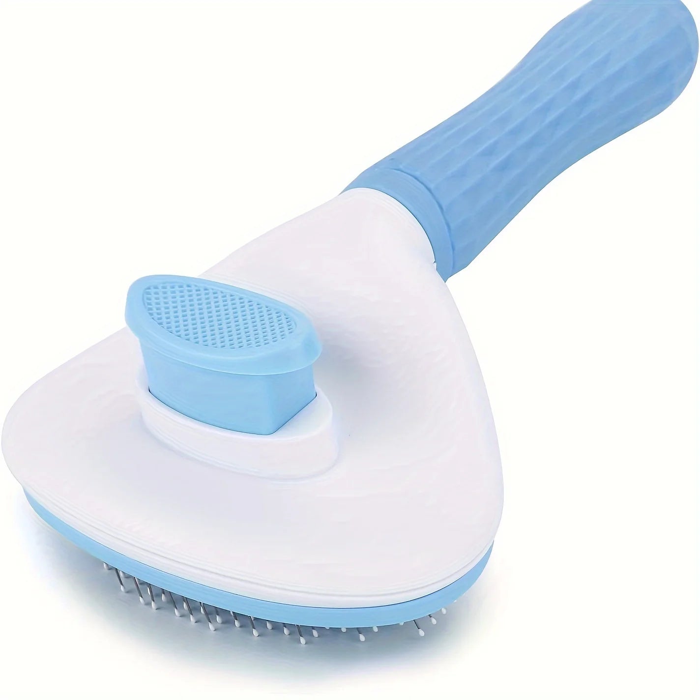 Pet Grooming Brush with One-Click Hair Removal - Cat and Dog Massage Comb with Detachable Stainless Steel Bristles - Plastic Han