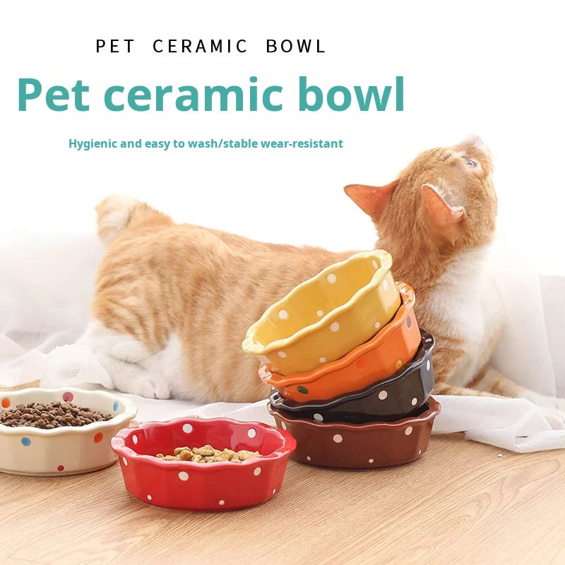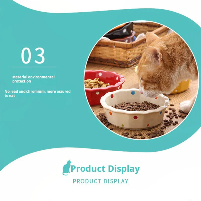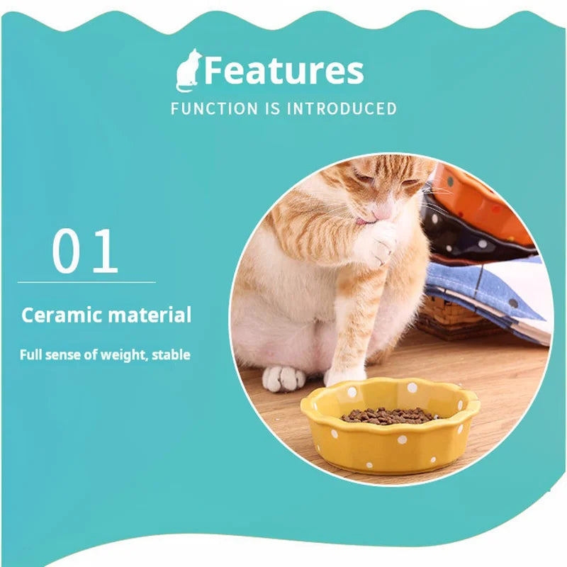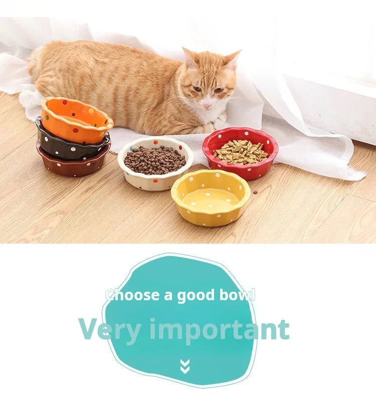 Mushroom ceramic cat bowl, shelf to protect the cervical vertebrae against black chin, cat food bowl small dog teddy inclined